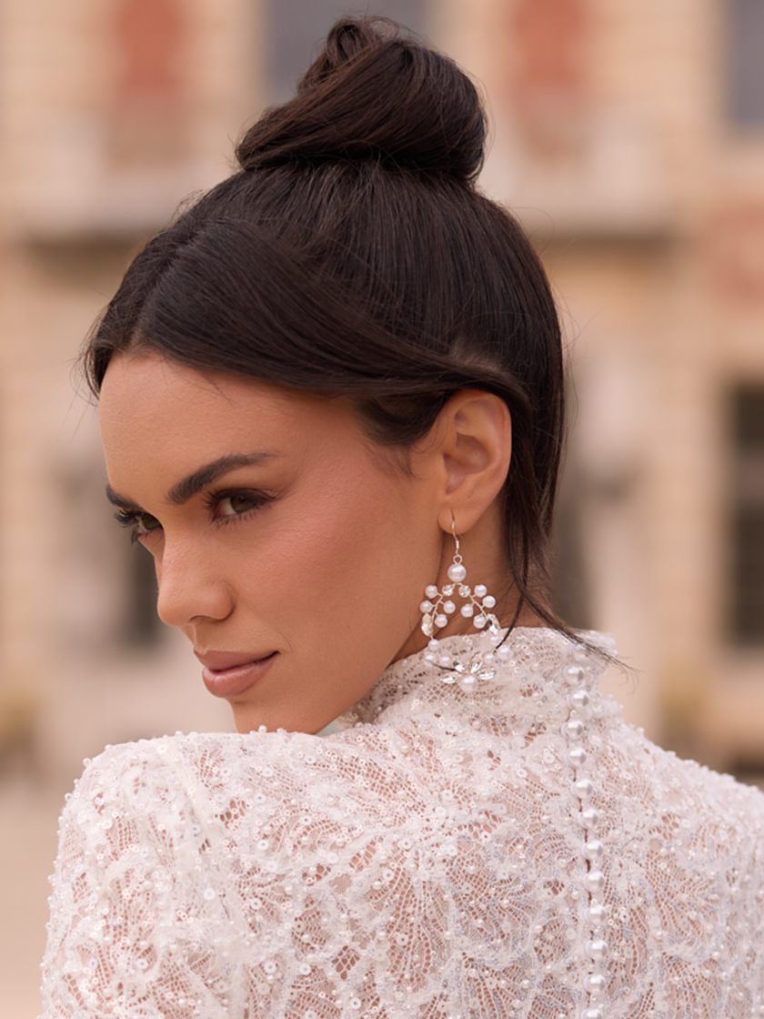 Feine Ohrringe mit funkelnden Zirkonia und eleganten Perlen. Der offene Hakenverschluss sorgt für eine leichte, zeitlose Optik. Das versilberte, nickelfreie Design ist hypoallergen und angenehm zu tragen. Ein klassisches Schmuckstück, das jedem Braut-Look dezente Eleganz verleiht.